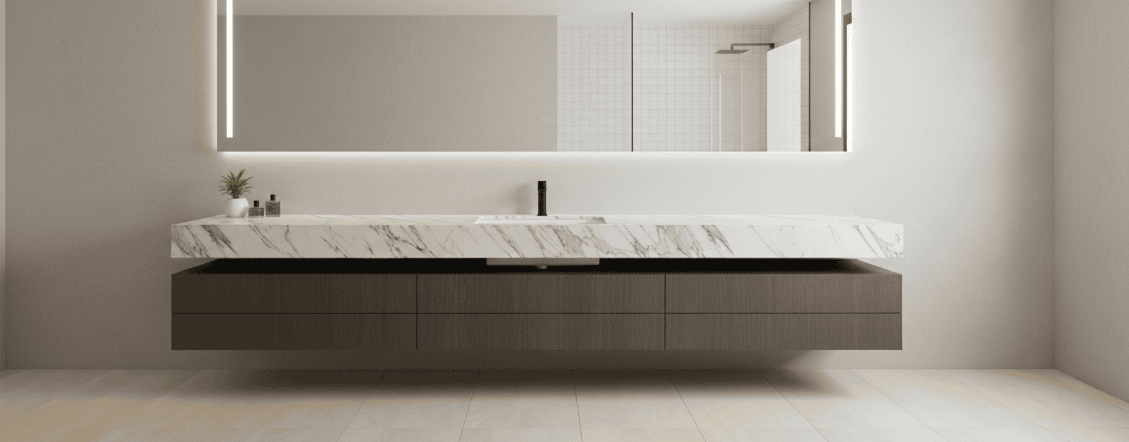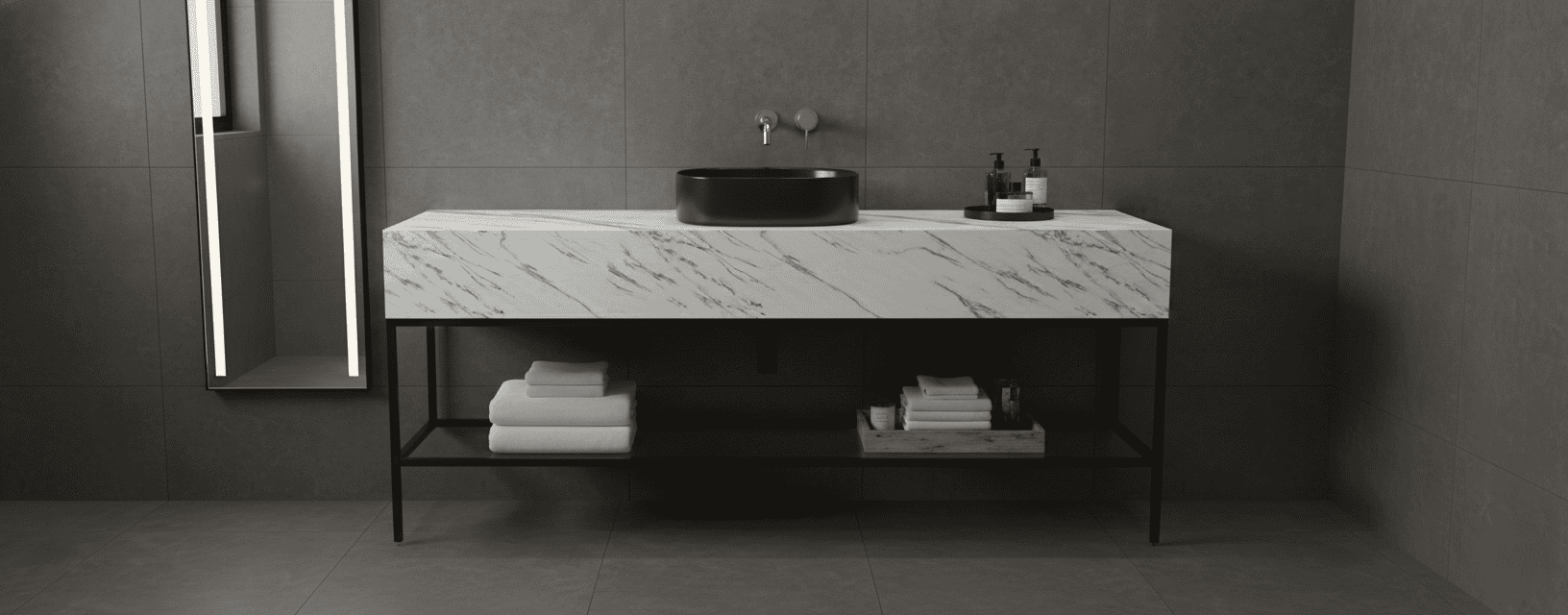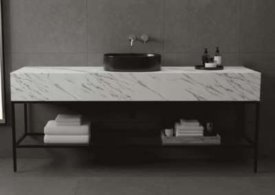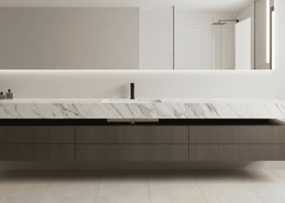 Encimeras que convierten el baño en un santuario de lujo atemporal, fusionando la pureza de los mármoles naturales con la vanguardia tecnológica de la piedra sinterizada.