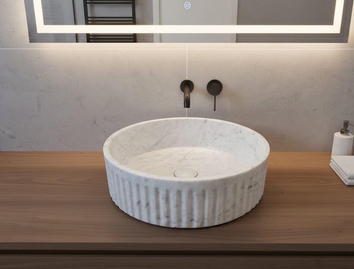 Nuestros lavabos de mármol natural son piezas de diseño que transforman el baño en un espacio de lujo absoluto y distinción. Se tallan con precisión artesanal, garantizando una textura orgánica única y una durabilidad eterna, convirtiéndose en obras de arte.