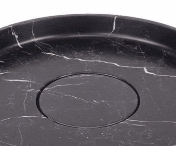 Lavabo circular de piedra natural, canto superior muy fino, paredes rectas y fondo muy plano con tapa de desagüe del mismo color